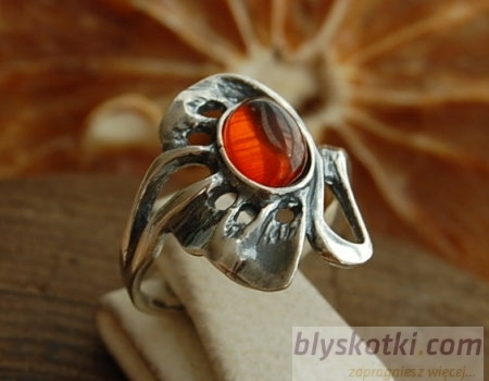 BURSZTYNOWA RÓŻA – broszka srebrna brosza 925