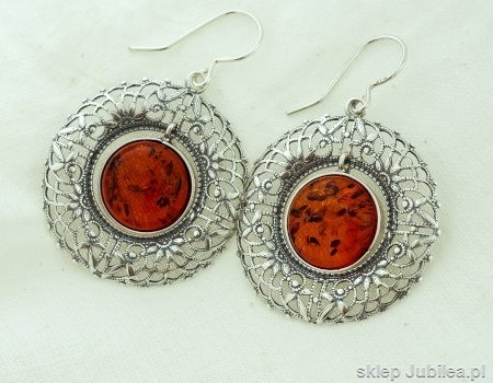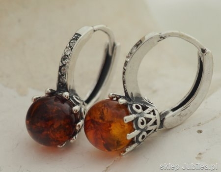 LIZBONA srebrne kolczyki z bursztynem angielskie