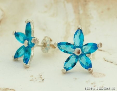 BIXTON – srebrne kolczyki z akwamarynem wkrętki