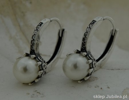 LIZBONA srebrne kolczyki z perłą angielskie zapięc