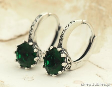 LIZBONA srebrne kolczyki ze szmaragdem angielskie