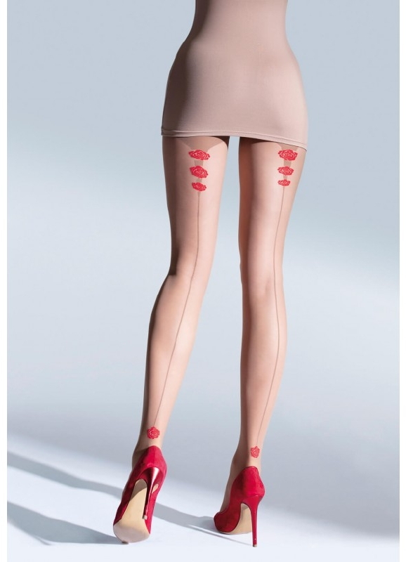 ROSES 20 DEN KNITTEX NOA rajstopy z czerwoną różą i szewkiem