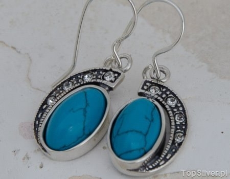 TEMPOLI – srebrne kolczyki z turkusem i kryształami