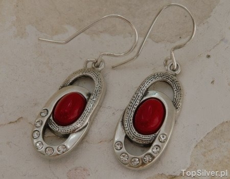 LOLO – srebrne kolczyki z koralem i kryształkami