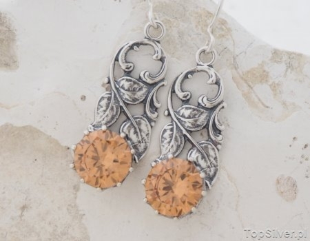 SECESJA – srebrne kolczyki z bursztynem RĘCZNIE ZROBION