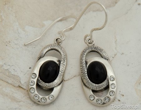 ALLESSI – srebrne kolczyki z onyksem i kryształkami
