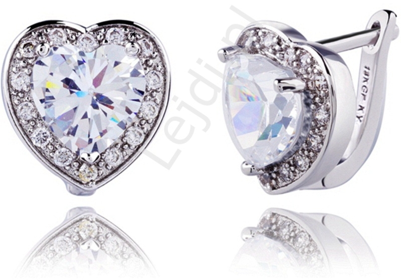 Kolczyki serca z kryształkami swarovskiego, pozłacane 18K białym złotem
