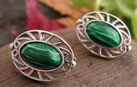 DEGLI – srebrne kolczyki malachit z kryształkami