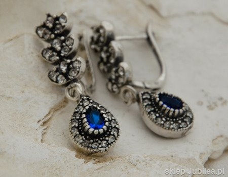 LIZBONA – srebrne kolczyki z szafirem i kryształk