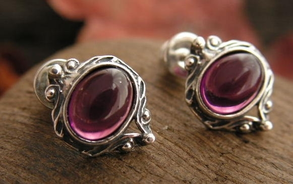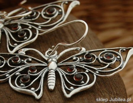 MOTYLE – srebrne secesyjne kolczyki z granatem