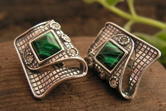 PAPPA – srebrne kolczyki malachit z kryształkami