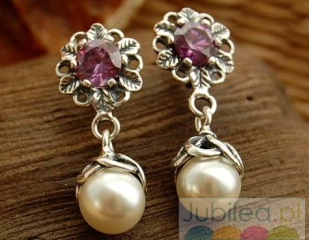 DINAR – srebrne kolczyki z perłą i ametystem