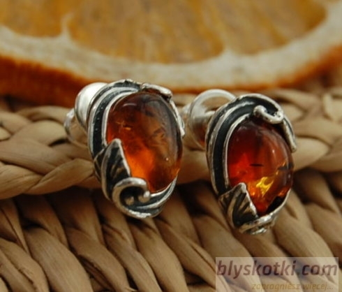 INES – srebrne kolczyki z bursztynem