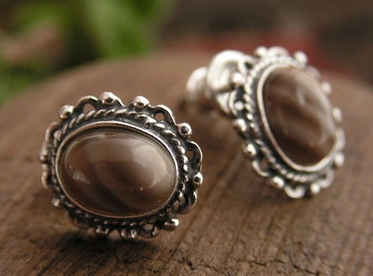 ROBERTA – srebrne kolczyki z krzemieniem pasiastym