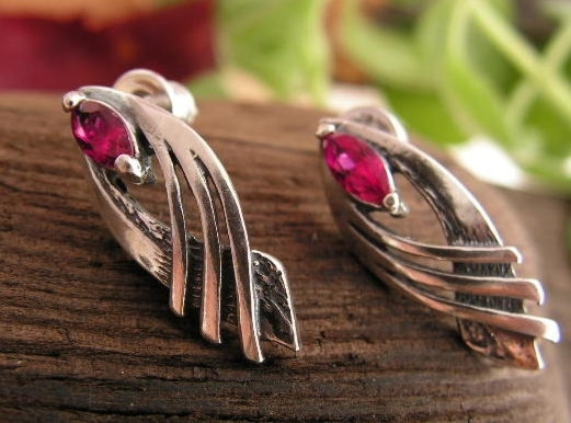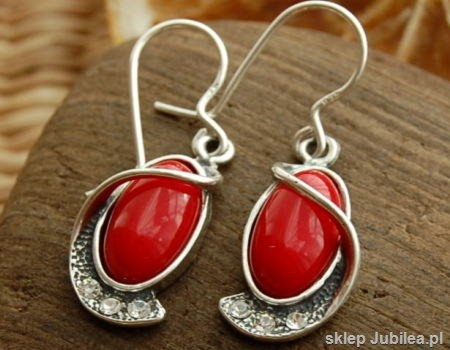 MURANO – srebrne kolczyki z koralem i kryształkami