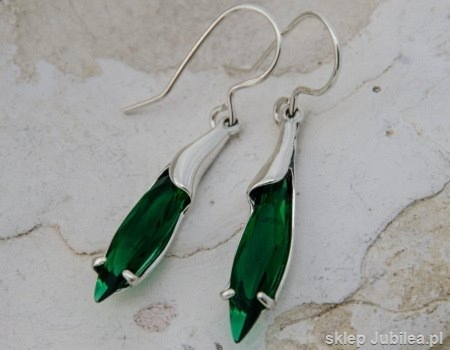 RAMON – srebrne długie kolczyki ze szmaragdem