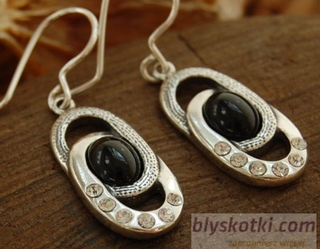 ALLESSI – srebrne kolczyki z onyksem i kryształkami