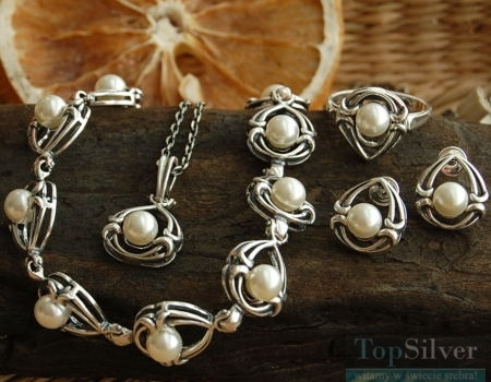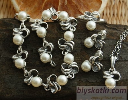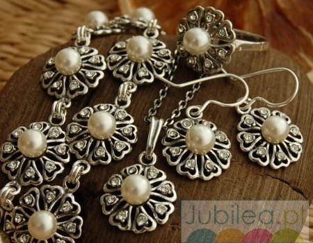 EMPIRE – srebrny komplet z perłą i kryształkami