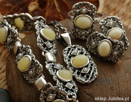 BAROCCO – srebrny komplet z bursztynem i perłami