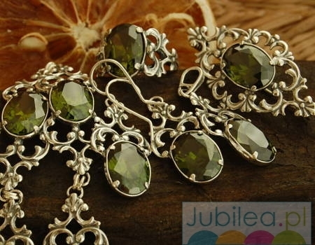 PIĘKNE WAŻKI – srebrny komplet z oliwinem