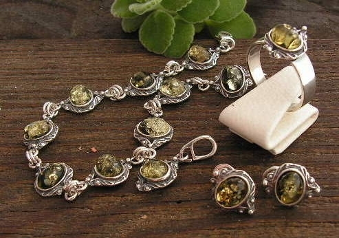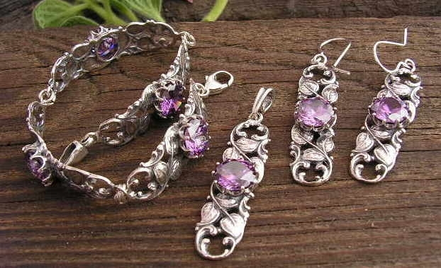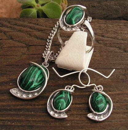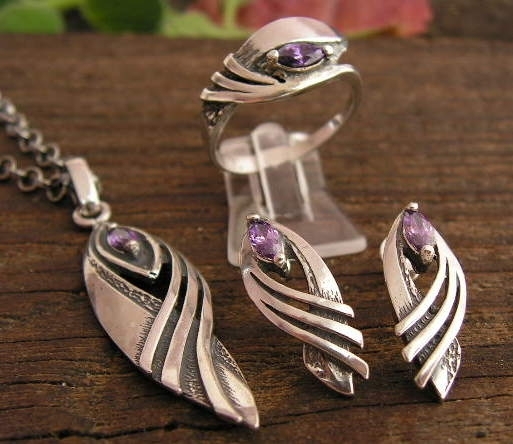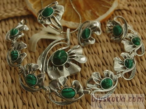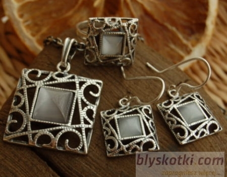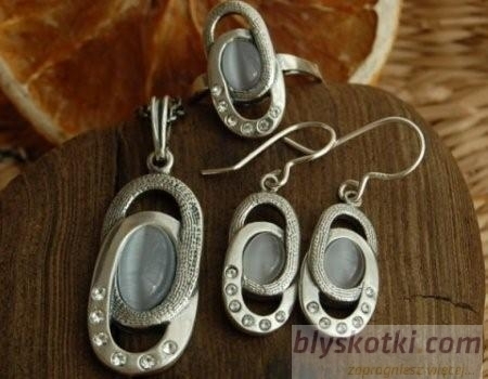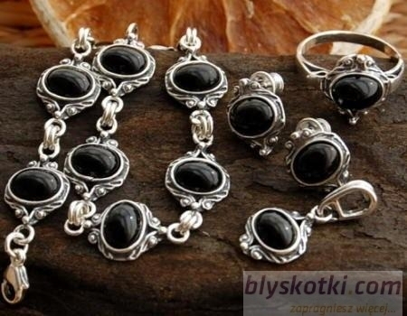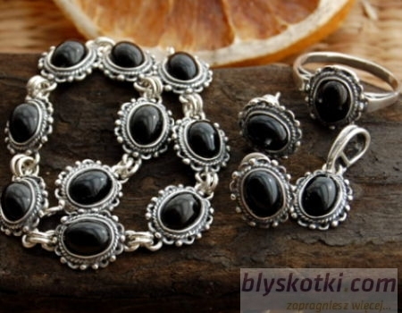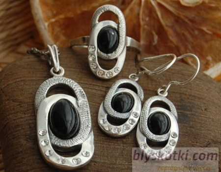 ALLESSI – srebrny komplet z onyksem i kryształkami