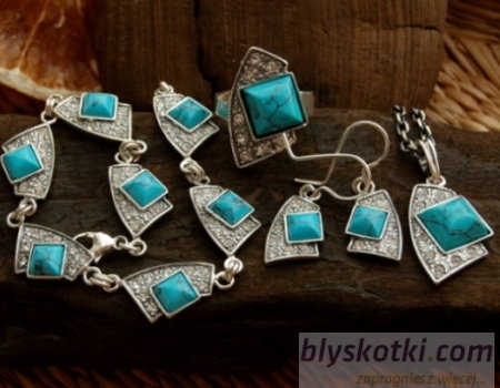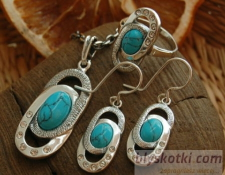 AVENIDA – srebrny komplet z turkusem i kryształkami