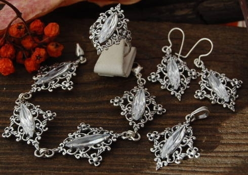VINCANA – srebrny komplet z kryształem Swarovskieg