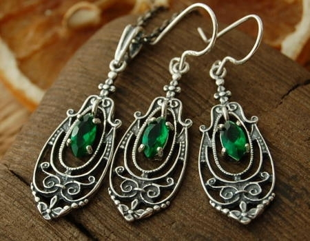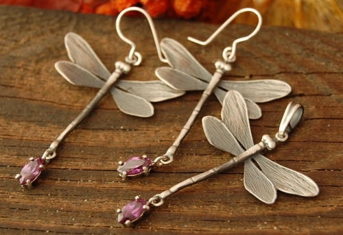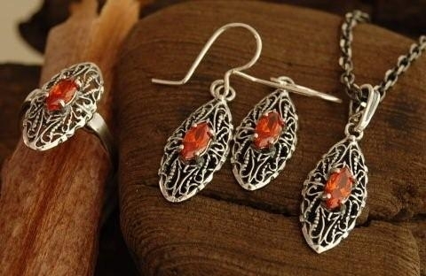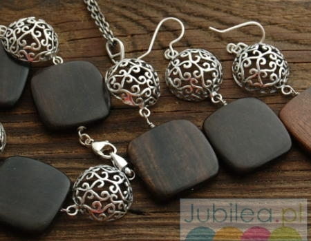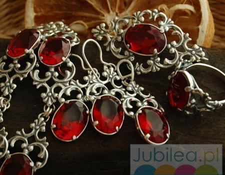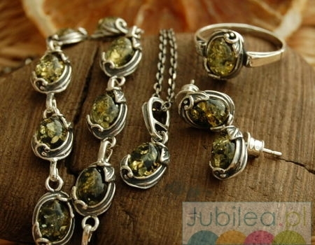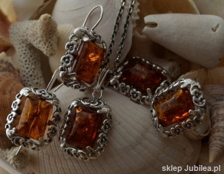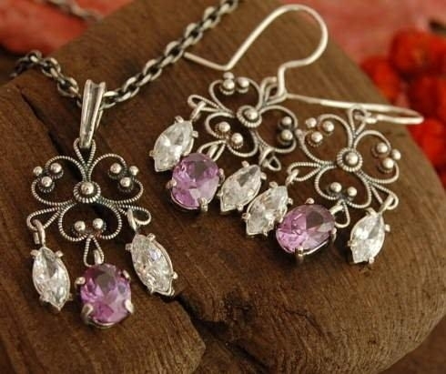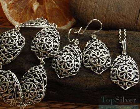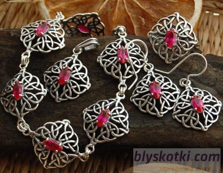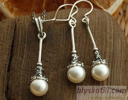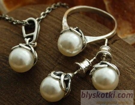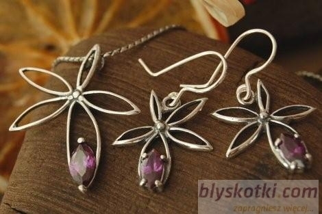 PAWIE OKO – srebrny komplet perły ametysty opale