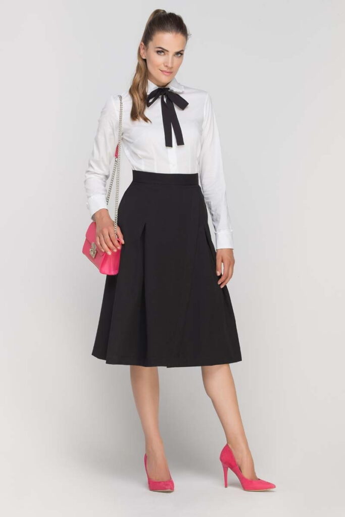 Czarna Spódnica Kopertowa Midi z Kontrafałdami
