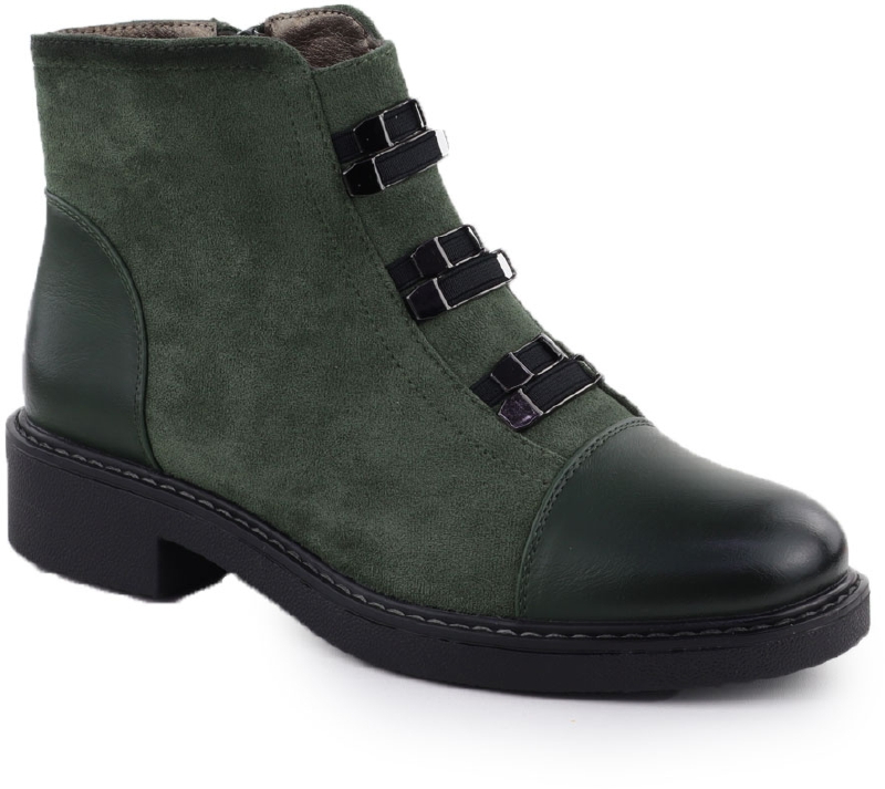 Botki damskie zamszowe ocieplane zielone M.Daszyński SA252-4