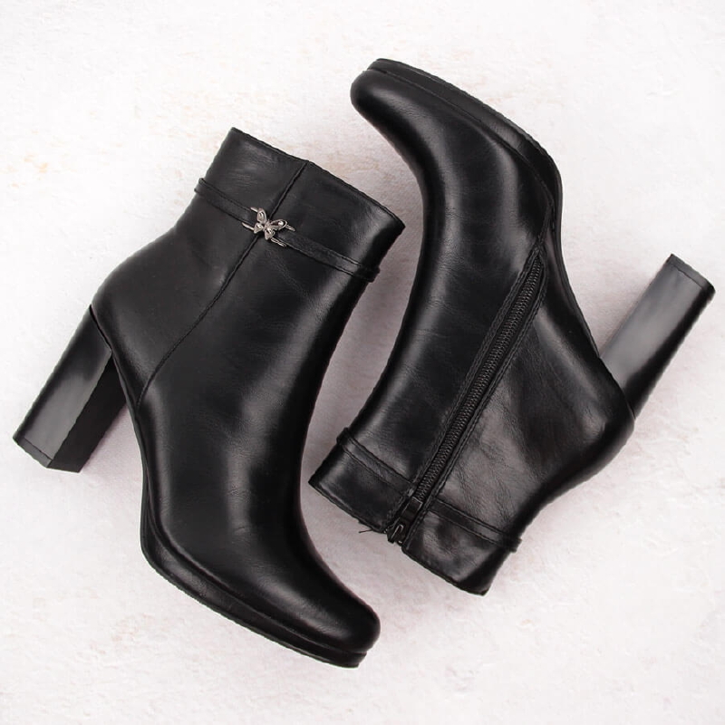 Botki damskie na słupku ocieplane czarne M.Daszyński AF125-22