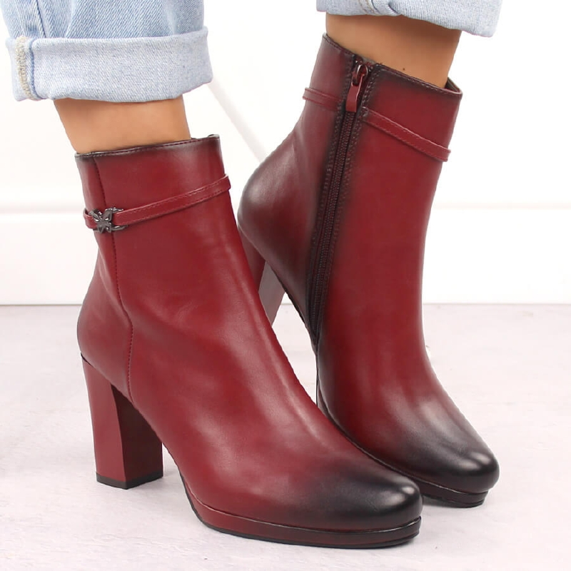 Botki damskie na słupku ocieplane czerwone M.Daszyński AF125-22
