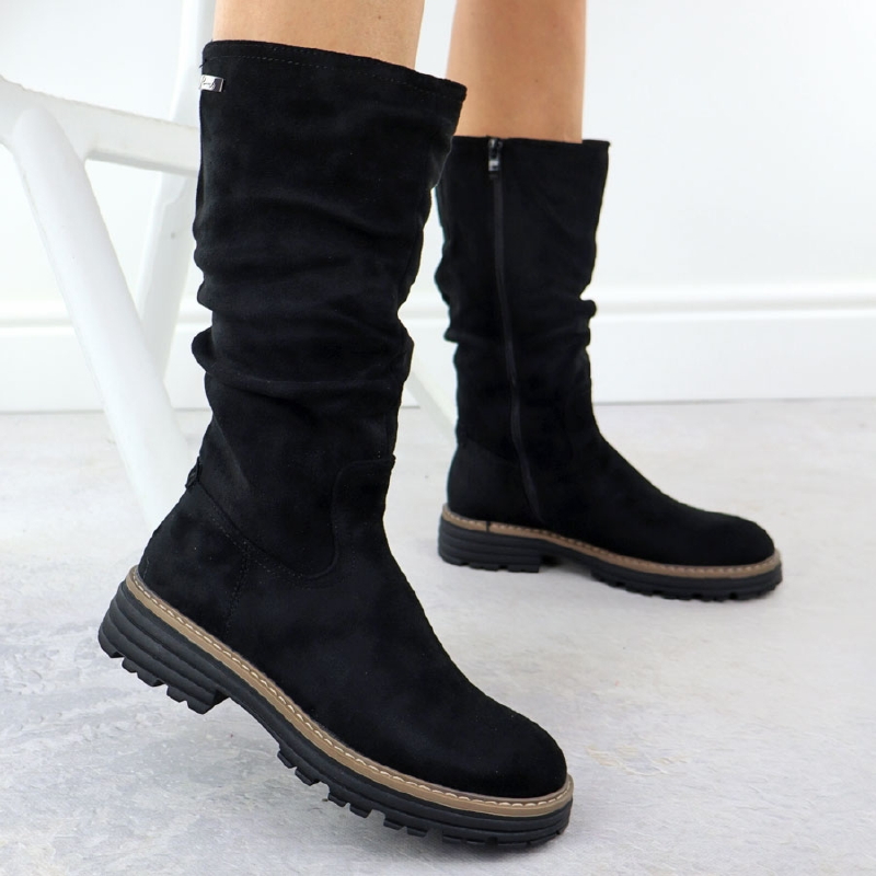 Kozaki zamszowe damskie czarne M.Daszyński MR2251-19