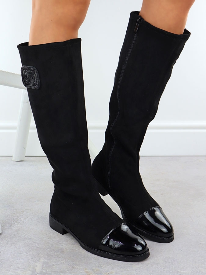 Kozaki zamszowe lakierowane damskie czarne M.Daszyński MR2251-19