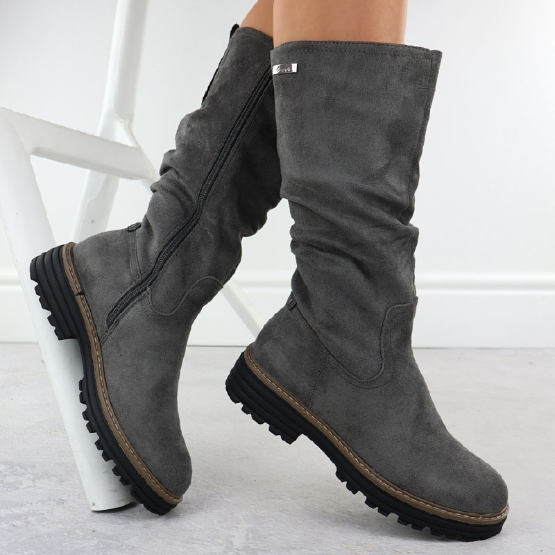 Kozaki damskie ocieplane marszczone szary M.Daszyński SA259-3