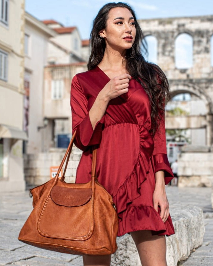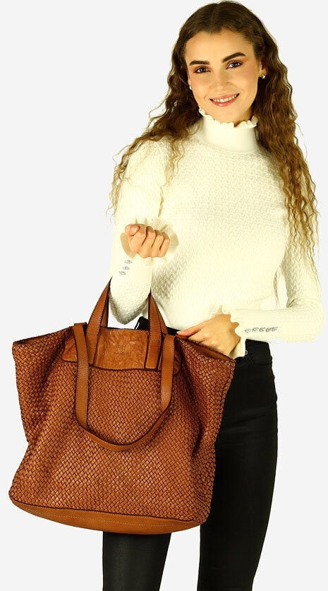 Pleciona shopperka MARCO MAZZINI karmelowa v186a