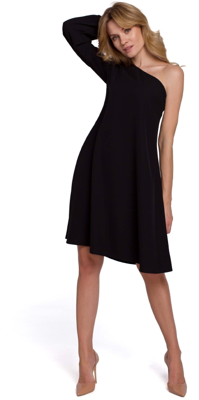 Wizytowa Sukienka z Ozdobnymi Rękawami – Czarna