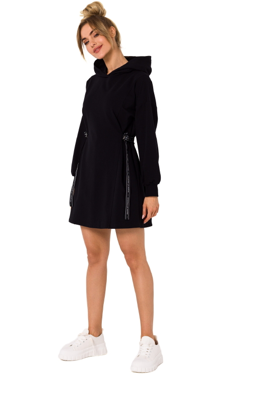 Sportowa Sukienka z Lampasem – Czarna