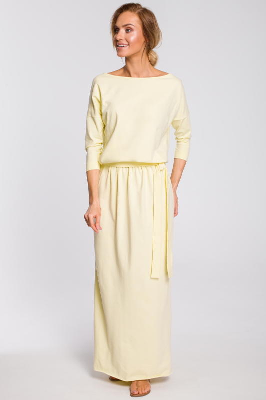 Dresowa Maxi Sukienka z Paskiem – Pistacjowa