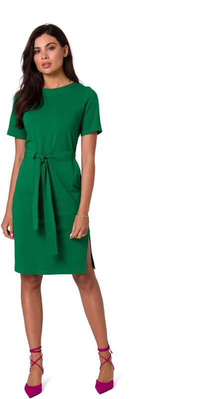 Prosta Bawełniana Sukienka z Kieszeniami – Zielona
