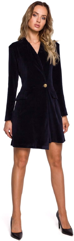 Żakietowa Sukienka Welurowa – Granatowa
