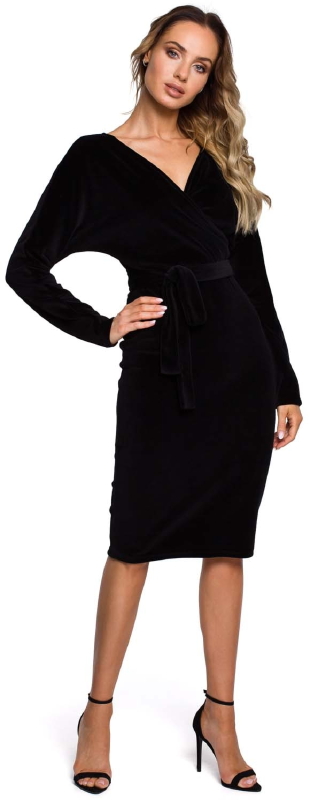 Czarna Welurowa Sukienka z Zakładanym Dekoltem