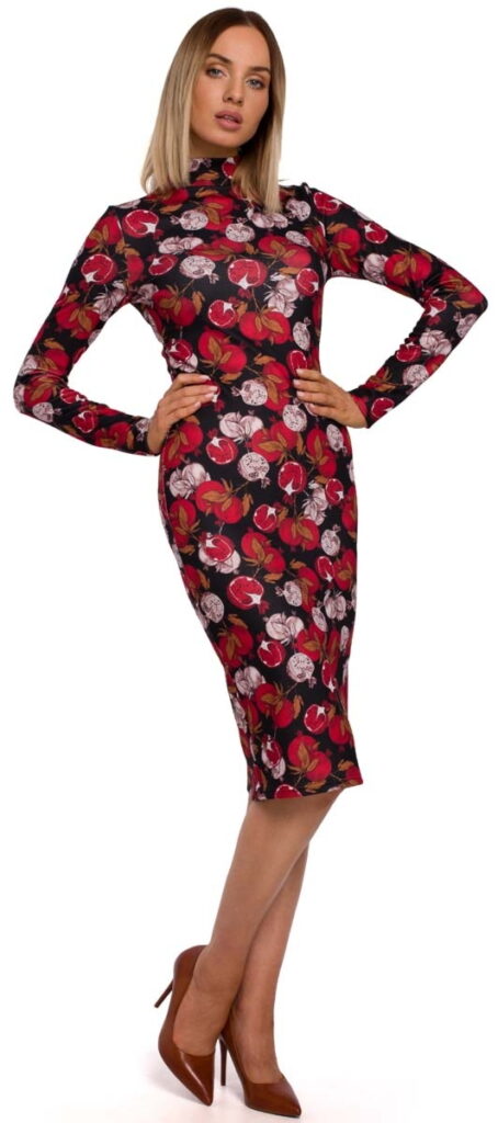 Wzorzysta Ołówkowa Sukienka z Półgolfem – Model 1