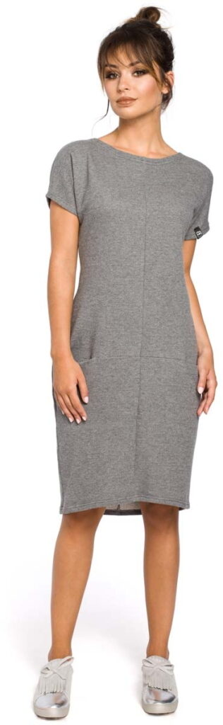 Dresowa Szara Sukienka Mini z Kieszeniami w Szwach