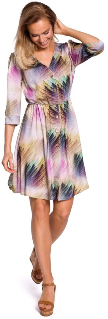 Wzorzysta Rozkloszowana Sukienka z Guzikami – Model 2