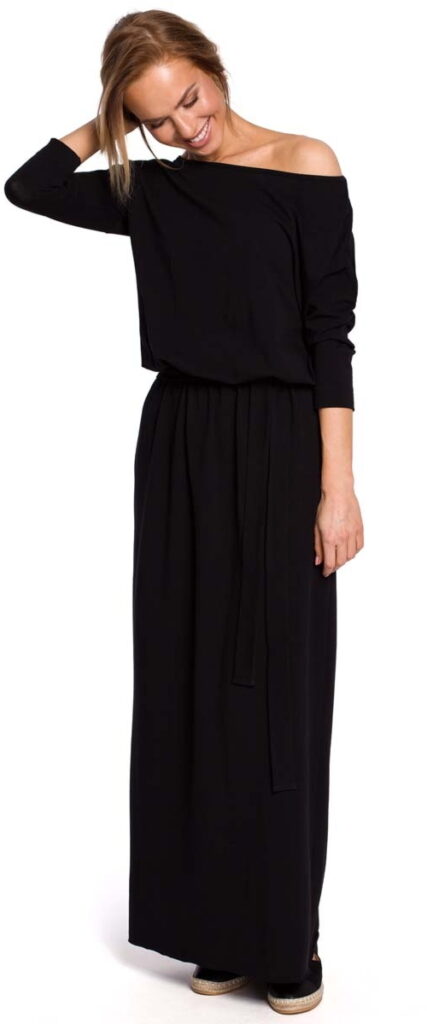 Czarna Zbluzowana Maxi Sukienka z Paskiem