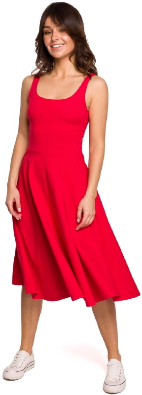 Bawełniana Rozkloszowana Sukienka na Ramiączkach – Czerwona