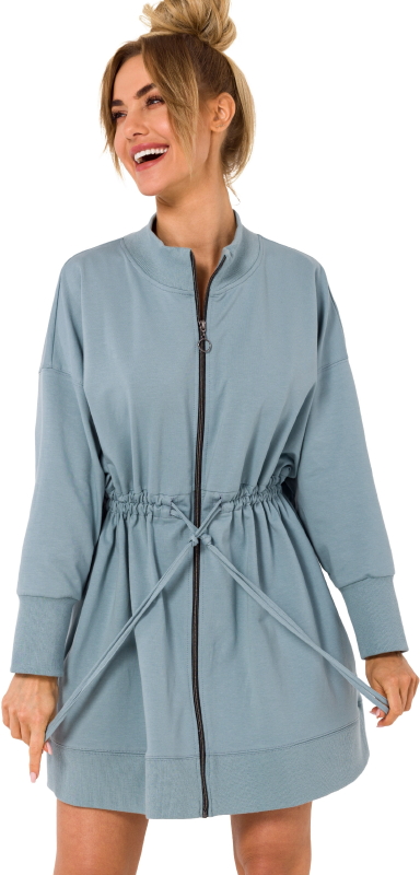 Długa Rozpinana Bluza z Kapturem – Beżowa