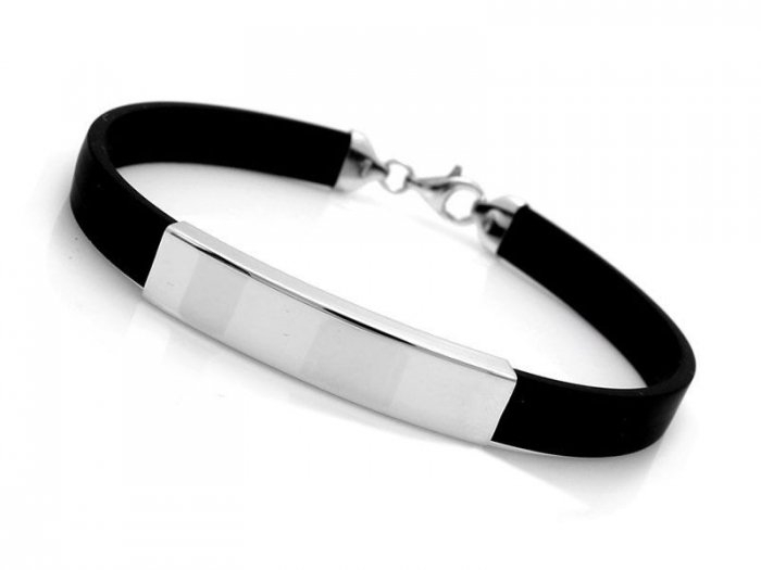 Bransoletka Kauczuk Srebro 925 +GRAWER