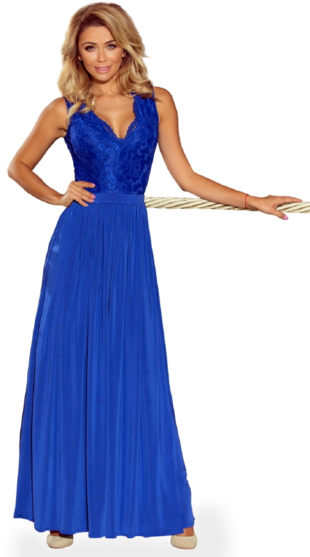 Chabrowa Wieczorowa Sukienka Maxi z Koronkową Górą bez Rękawów